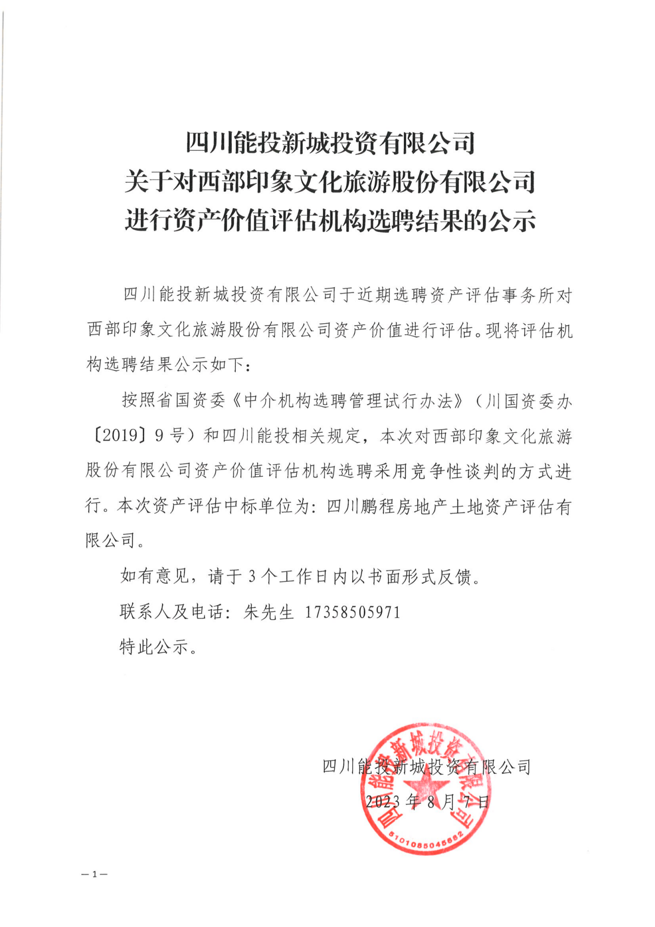 下一條:關于選聘中介機構對西部印象文化旅游股份有限公司進行資產價值評估事項的公示