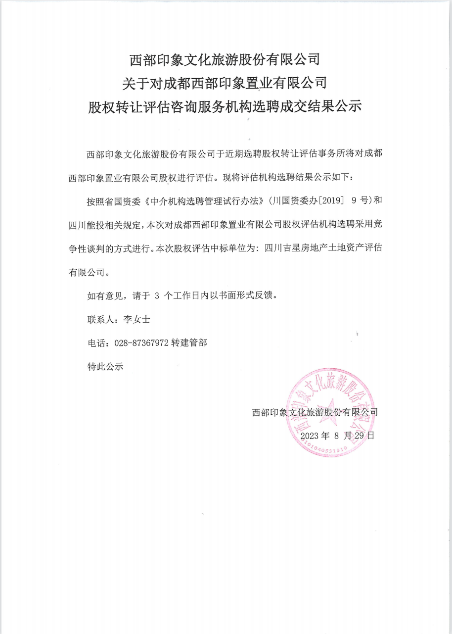 下一條:關于選聘中介機構對成都西部印象置業有限公司進行資產評估事項的公示