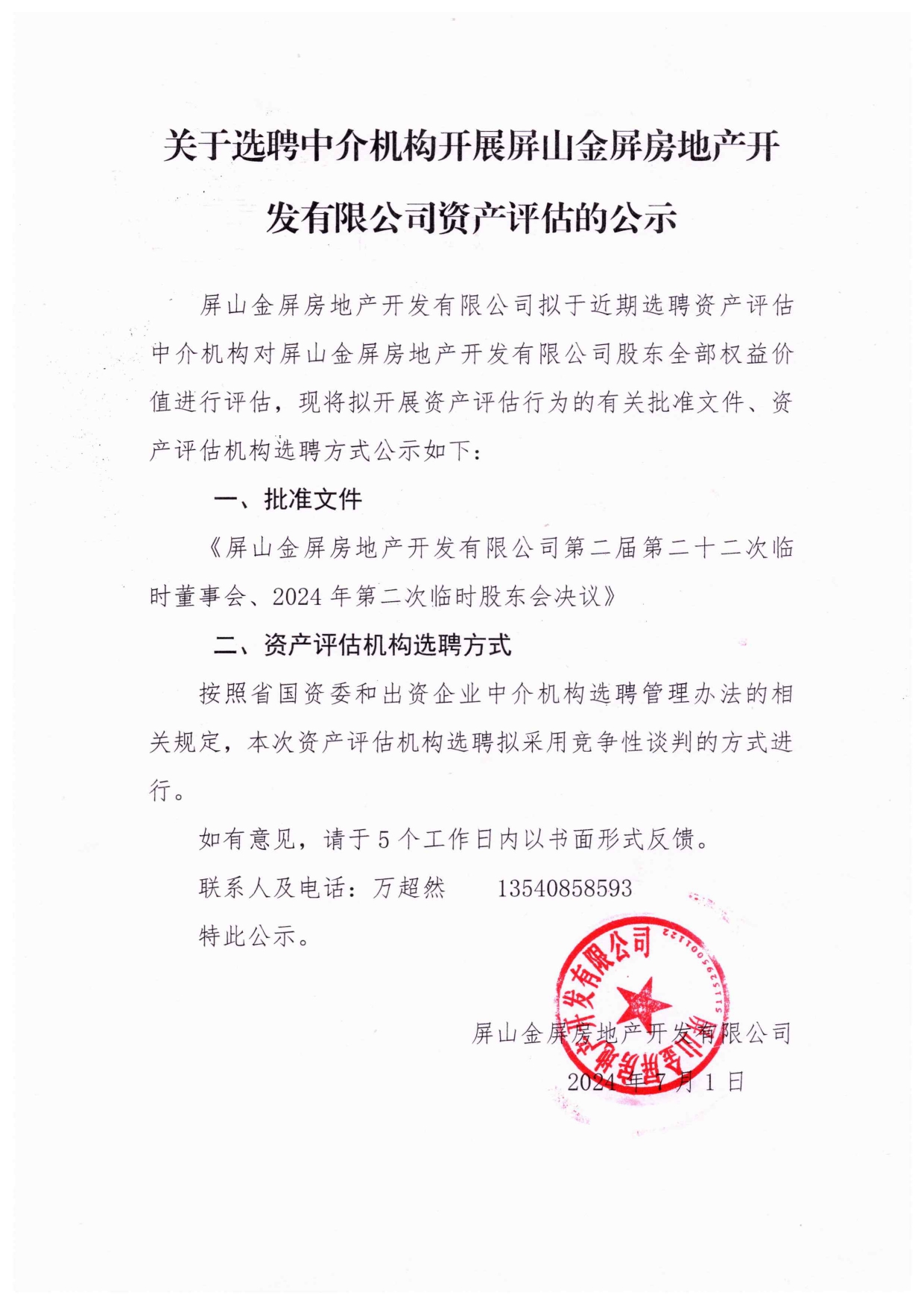 下一條:關于九寨溝宏義投資有限公司百分之百的股東權益市場價值評估項目選聘結果的公示